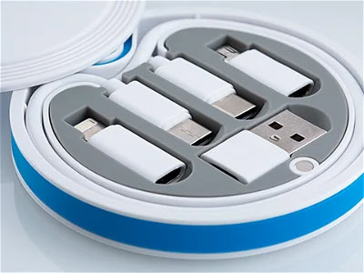 Das könnte Ihnen schmecken – unser 6-in-1-Kabelset TWS-myConvertics enthält Lade- und Datenkabel sowie Adapter für sechs Funktionen: Ein 48 cm langes USB Typ-C zu USB Typ-C Kabel, einen 8 Pin für Apple® Adapter, einen Micro-USB Adapter sowie einen USB-A Adapter. Der große Gehäusedeckel aus ASB-Kunststoff mit Magnetverschluss bietet dabei viel Platz für Ihren individuellen Werbeaufdruck.